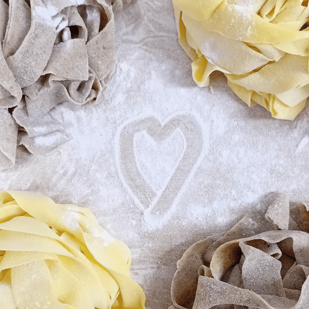 Nel nostro laboratorio realizziamo un impasto senza glutine e ad alto contenuto proteico a base di farina di ceci, farina di riso e uova, pensato per chi cerca una pasta fresca artigianale più leggera ma ricca di gusto e nutrimento.